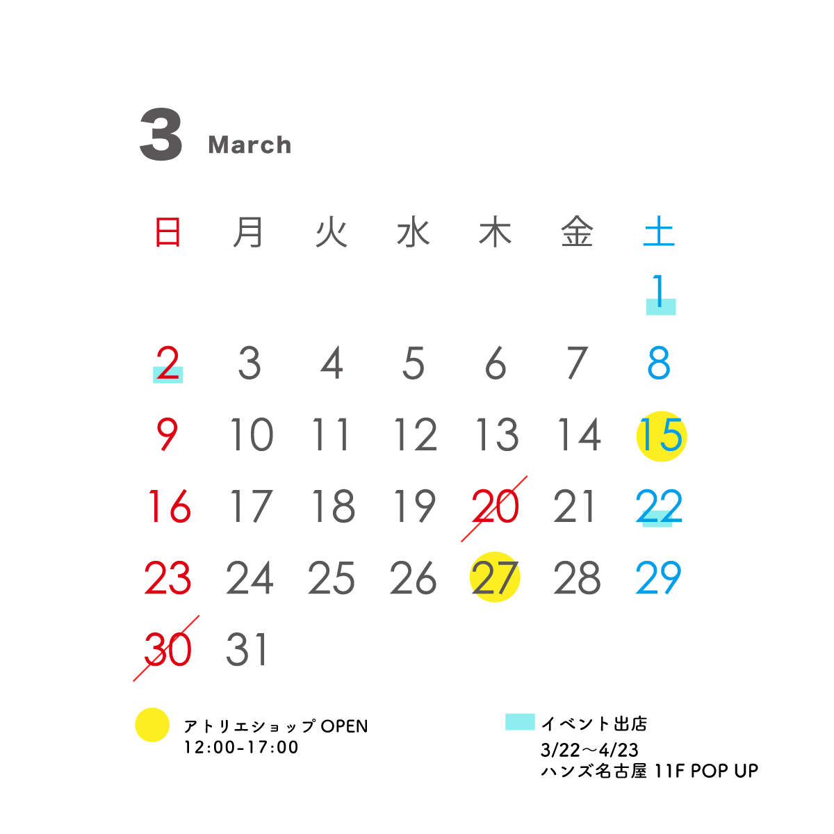 3月のアトリエショップオープン日