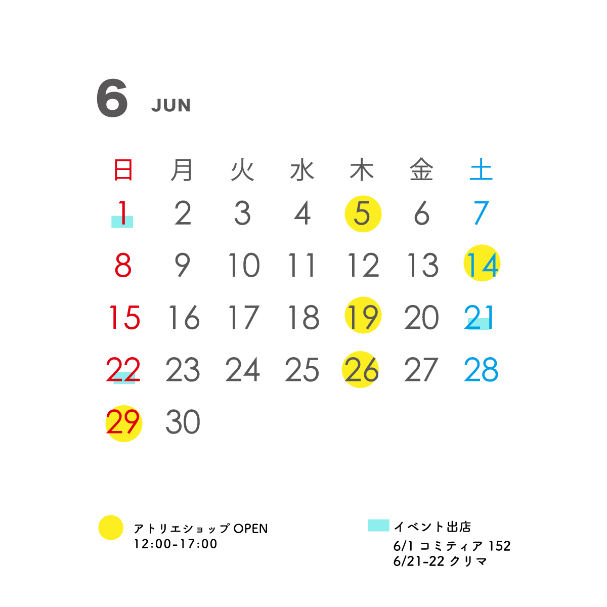 6月のアトリエショップオープン日