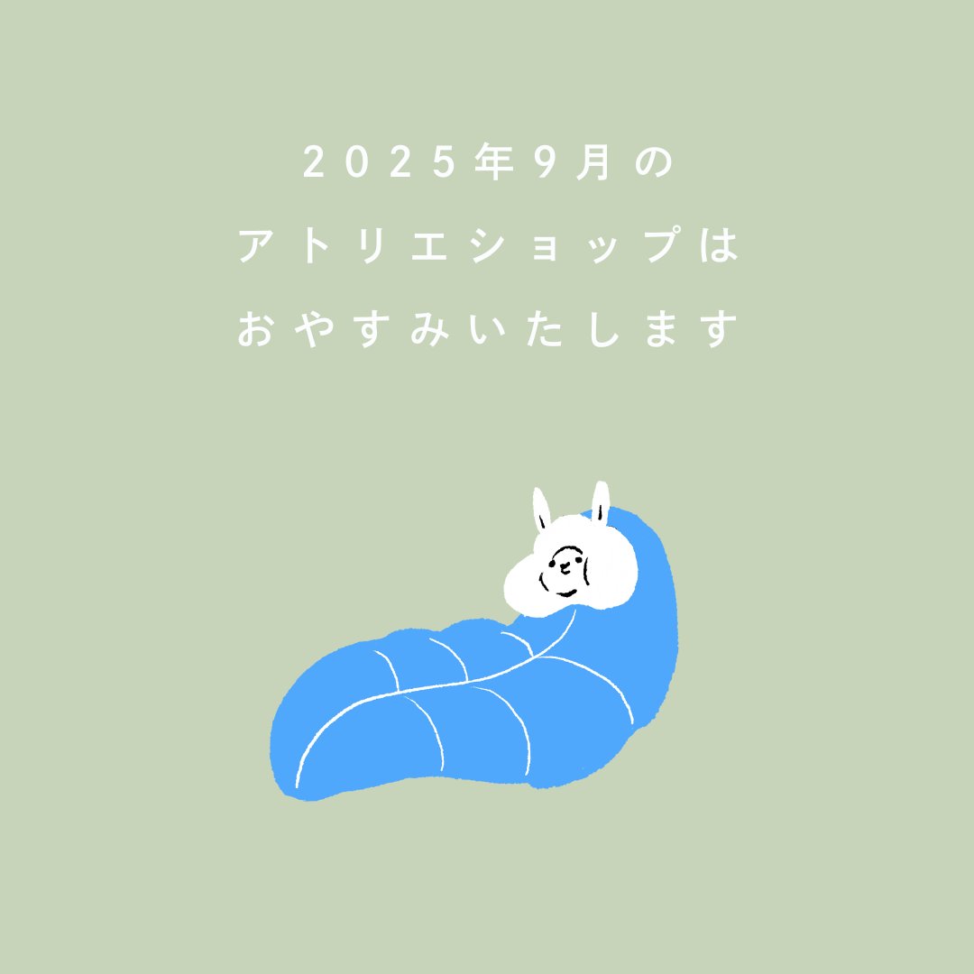 2025.9月 アトリエショップ営業について 2025 9/15 CALENDAR 2025-09-15 9月26日〜29日に開催する個展の準備につき、9月もアトリエショップはお休みさせていただきます CALENDAR 個展「アルパカにまみれる」2025.9/26-29 デザインフェスタギャラリー原宿 2025.11月 アトリエショップ営業について