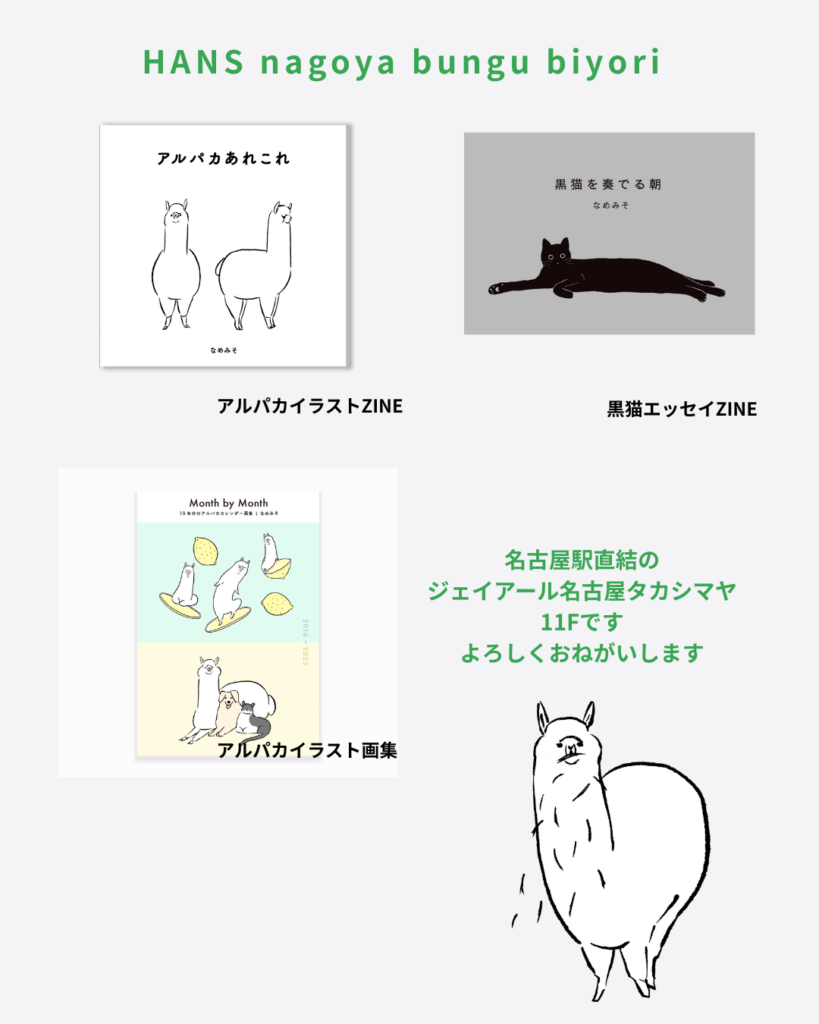 アルパカのイラスト・黒猫エッセイZINEもあります。